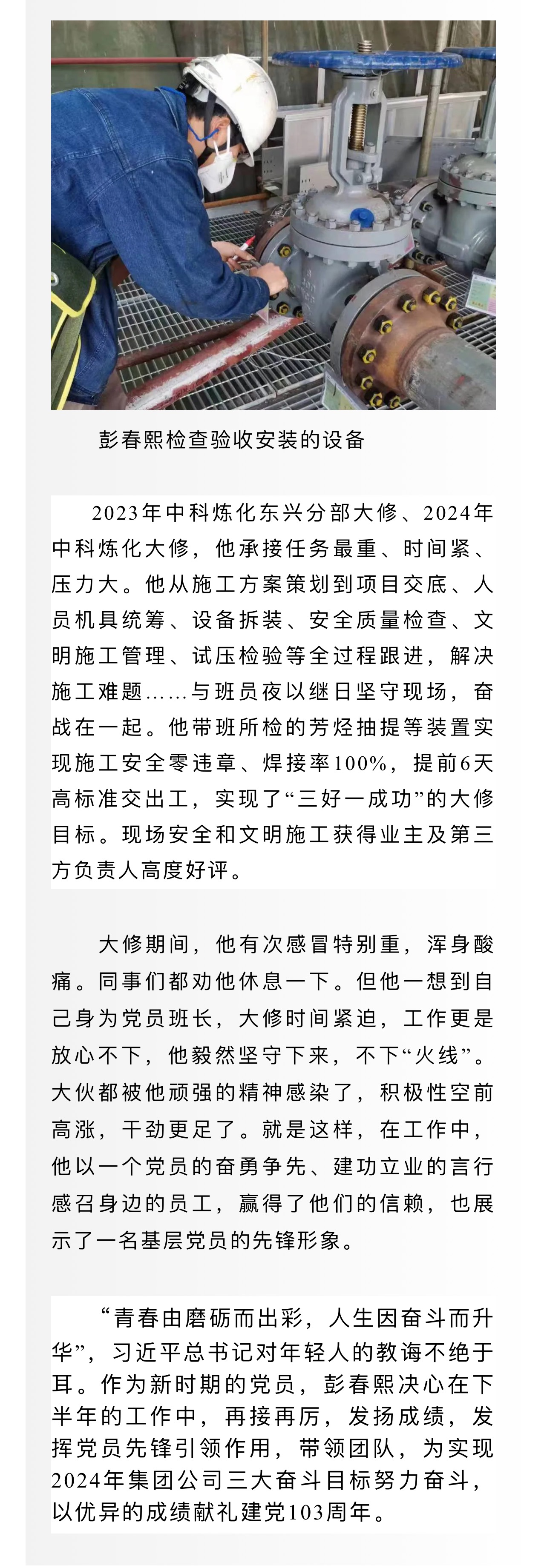 黨旗照耀我奮斗——記集團(tuán)公司優(yōu)秀共產(chǎn)黨員彭春熙