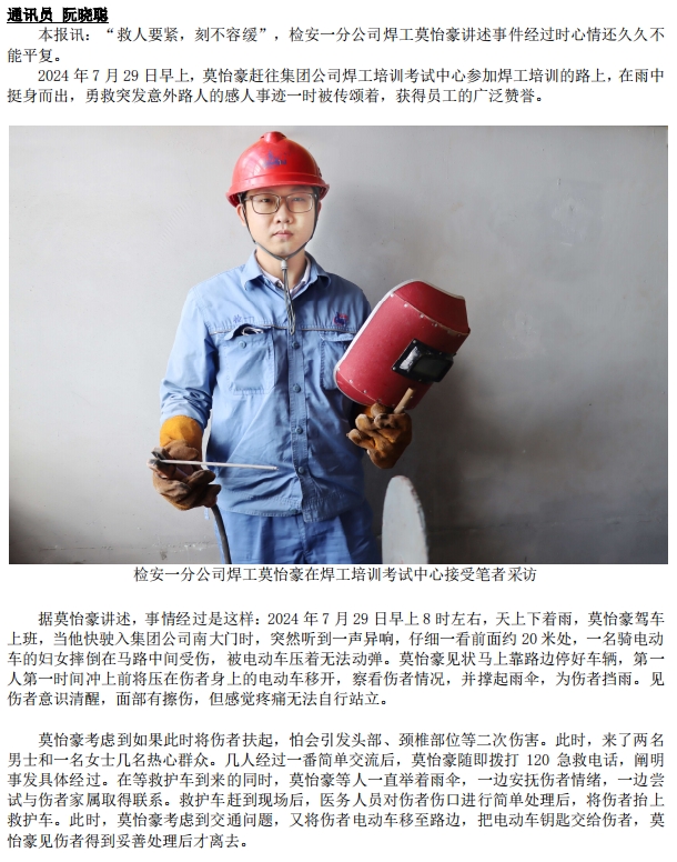 危難時刻伸援手:員工莫怡豪雨中勇救突發(fā)意外路人獲贊譽