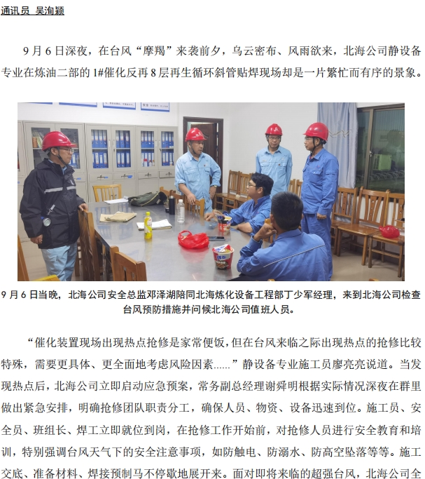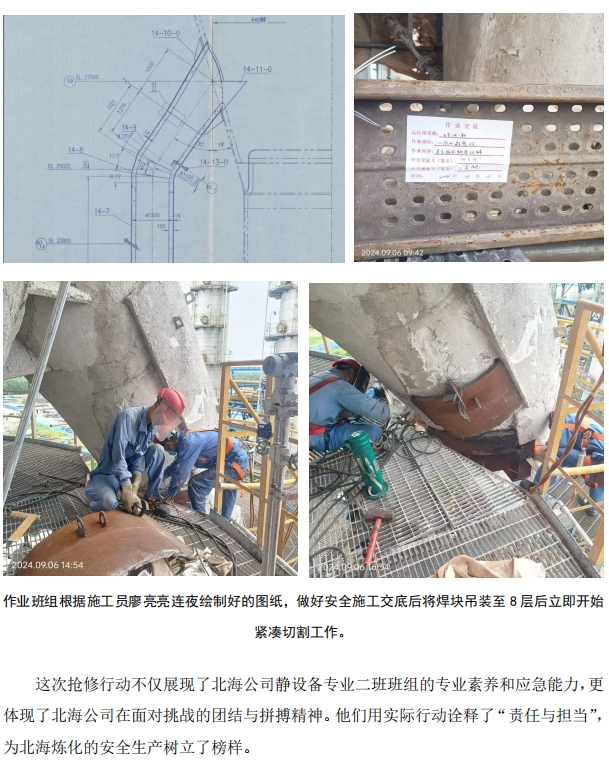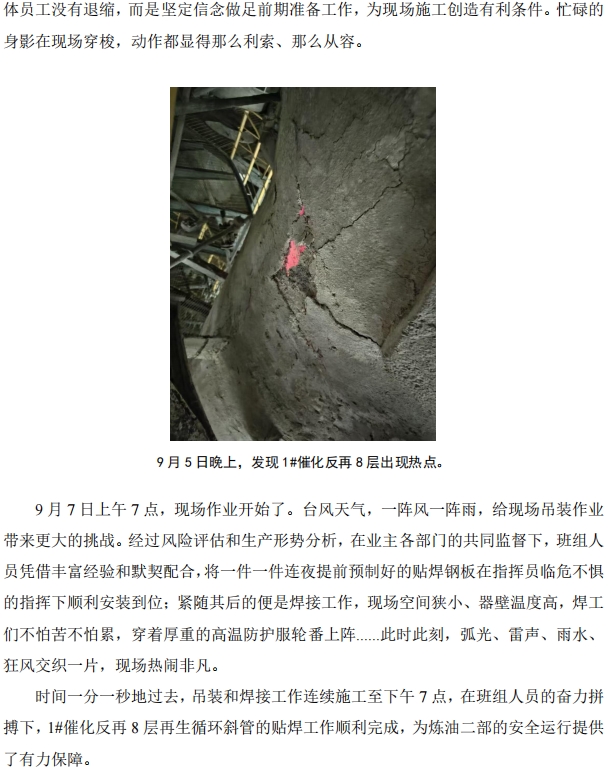臺風(fēng)前夕!北海公司對 1#催化再生循環(huán)斜管貼焊搶險(xiǎn)