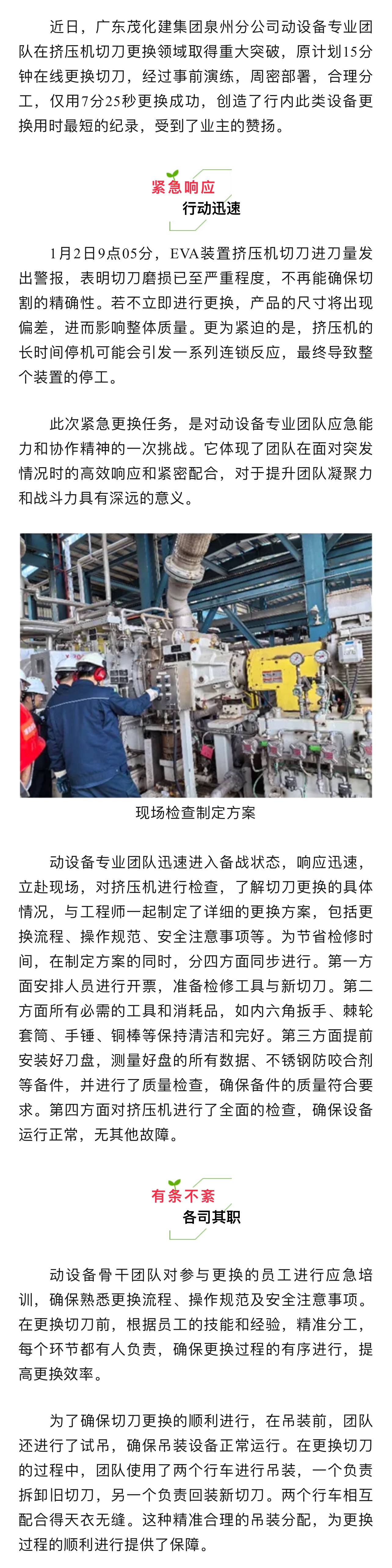超棒!泉州動(dòng)設(shè)備團(tuán)隊(duì) | 7分25秒成功在線(xiàn)更換擠壓機(jī)切刀