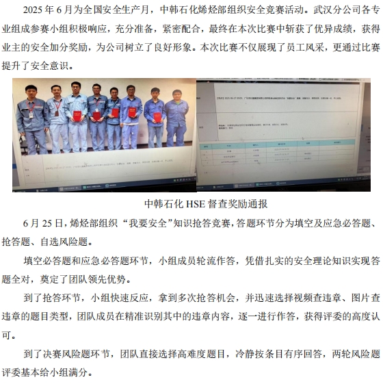 武漢分公司參加烯烴安全知識競賽獲獎(jiǎng)勵(lì)