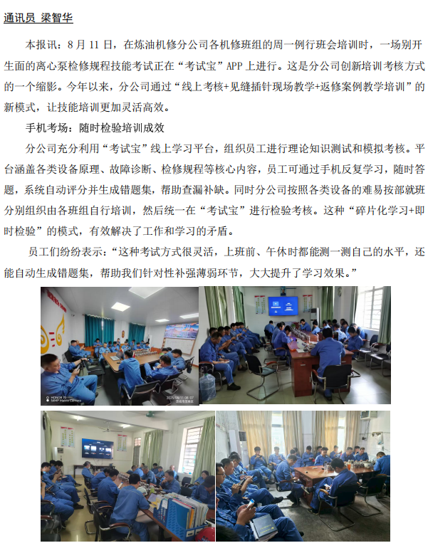 煉油機(jī)修分公司創(chuàng)新培訓(xùn)模式鍛造機(jī)修精兵